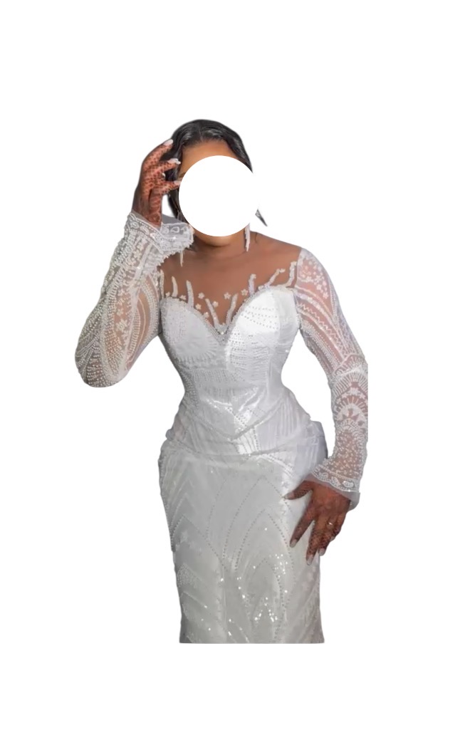 Robe cousu par Rimk à 300.000, tissu acheter chez dem à 200.000, porté une fois, vendu sans voile, aucun défaut, réserves disponibles