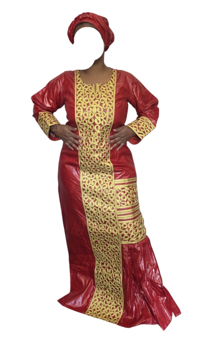 Bazin confectionner par Maïmour à 500.000, porté une fois, avec foulard et pagne