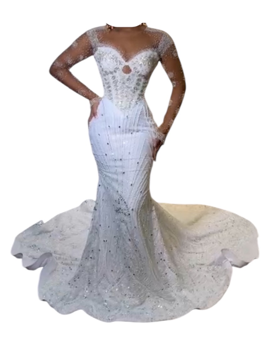 Robe de mariée Tissu, voile de 2 mètres, Taille XL, Très bon état