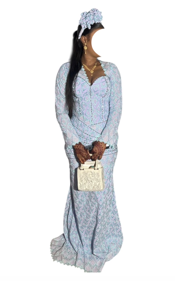 Tissu acheter 80.0000 et Confectionner par ds fashion à 60.000, porté une fois, avec un bandeau, réserves disponibles