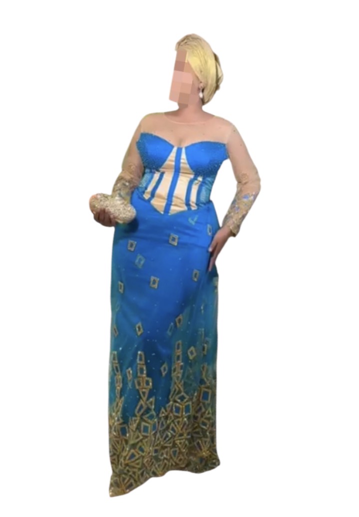 Tissu acheter à 120.000 et cousu à 225.000 par baraka style, porté une fois, vendu avec foulard, réserves disponibles