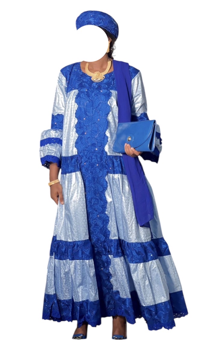 Il s’agit d’un bazin mélangé avec un brodé Autriche acheter à 300.000, porté une fois, avec foulard