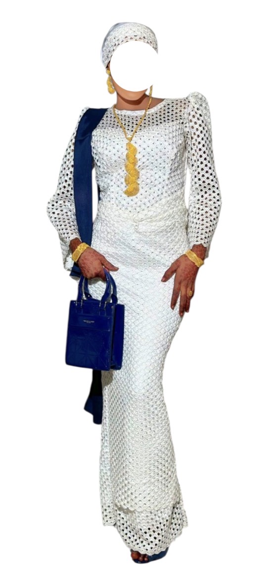 Brodé acheté à 40.000 et cousu à 25.000, avec turban fait à 4.000, porté une fois