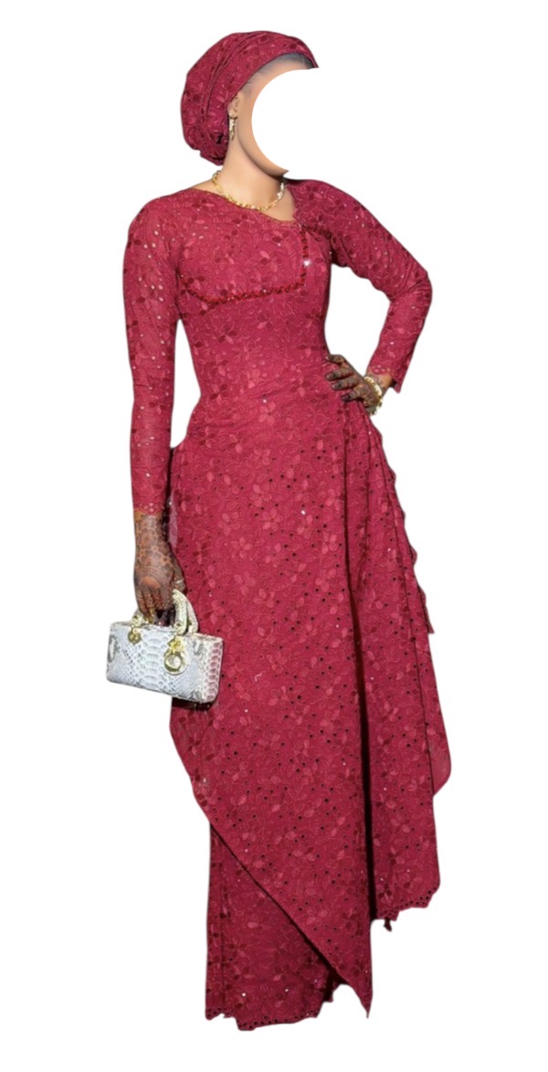 Brodé acheter à 200.000, porté une fois, confectionner par Youba couture à 70.000, avec foulard