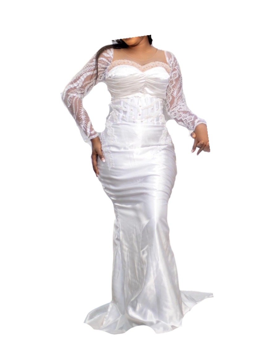 Robe de mariée Blanche, Brodé, Taille L, Très bon état, foulard