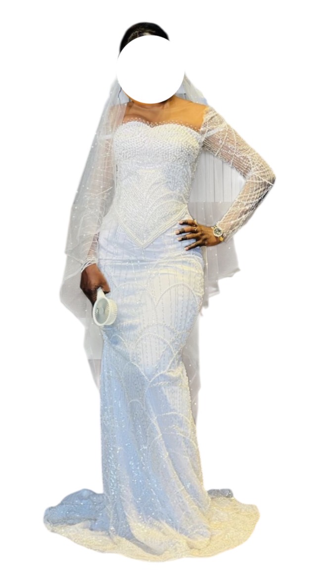 Robe de mariée Blanche, Brodé, Taille L, Très bon état, foulard
