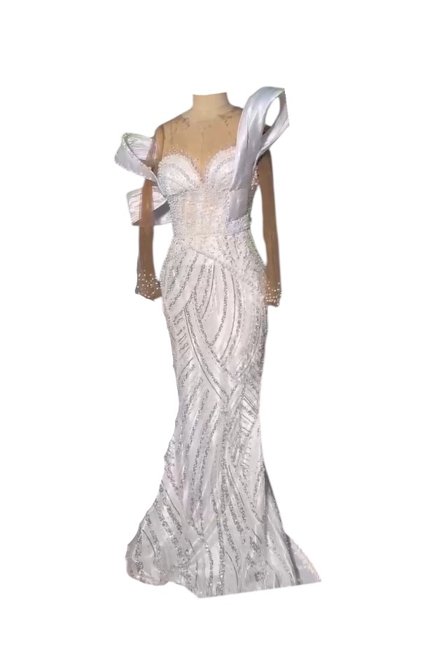 Robe de mariée Blanche, Brodé, Taille L, Très bon état, foulard