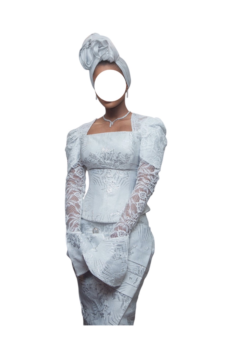 Confectionner au Nigeria à 300.000, porté une fois, avec foulard, petit défaut