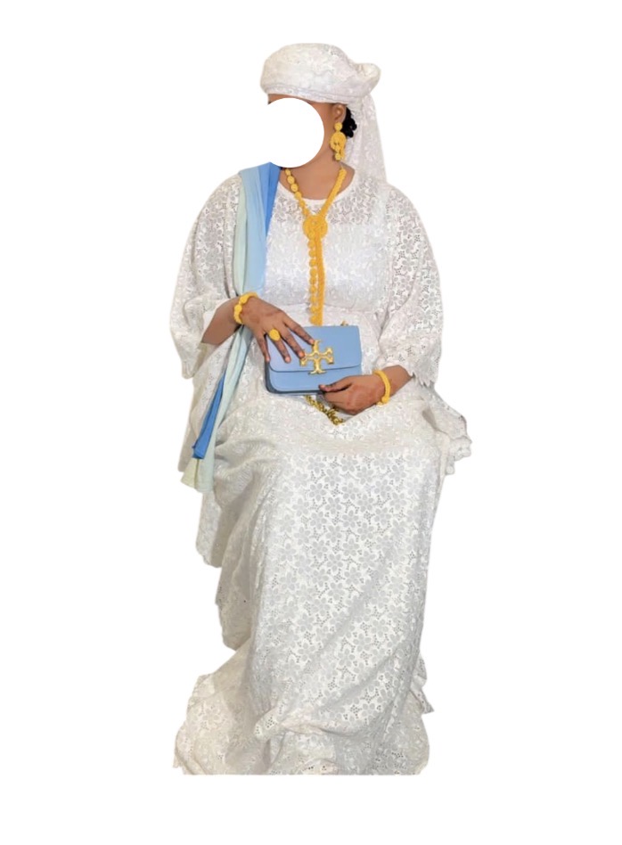 Brodé acheter à 100.000,et cousu à 25.000 porter une fois, avec foulard