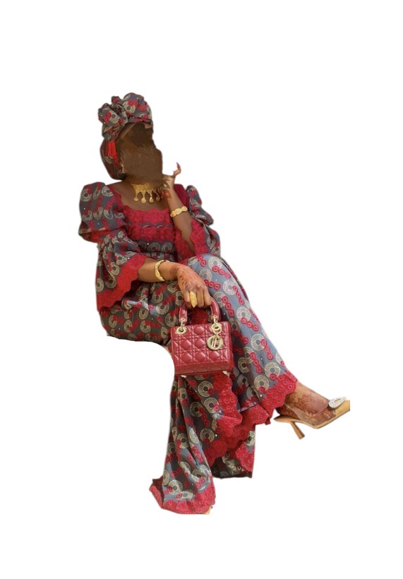 Brodé voile acheter à 90.000 et cousu à 25.000 porté une fois, réserves disponibles, vendu avec foulard