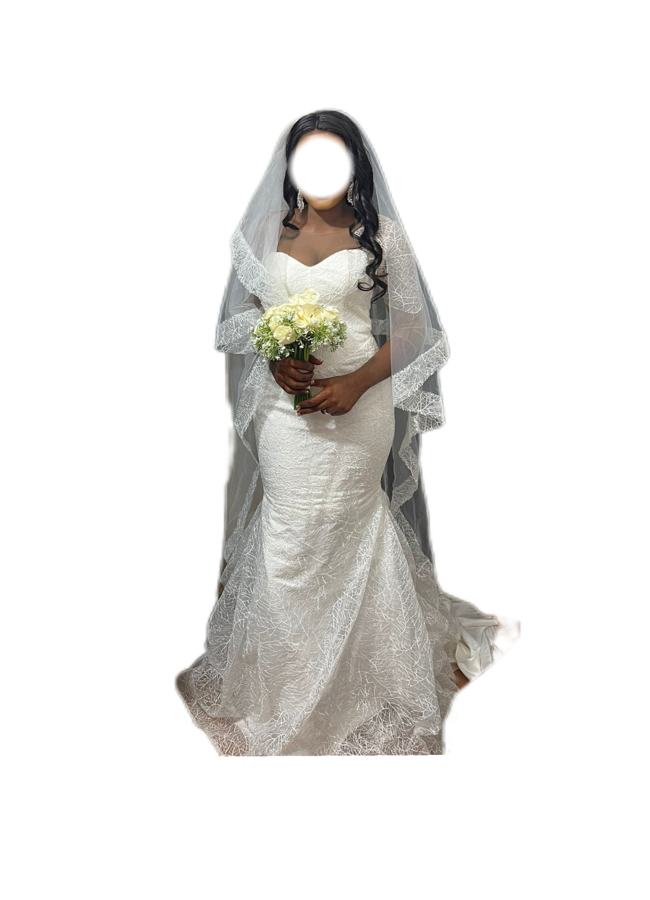 Robe de mariée, porté une fois, vendu avec voile, tissu acheté à 200.000 et cousu à 150.000 FCFA, réserves disponibles
