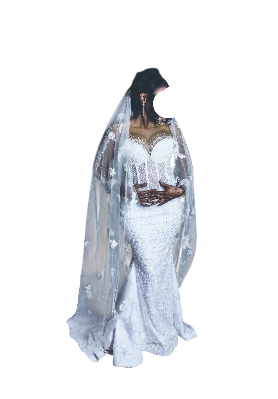 Robe confectionné à 600.000 FCFA à Dakar, porté une fois, pas de réserves, le haut est fait à la main, vendu avec un voile