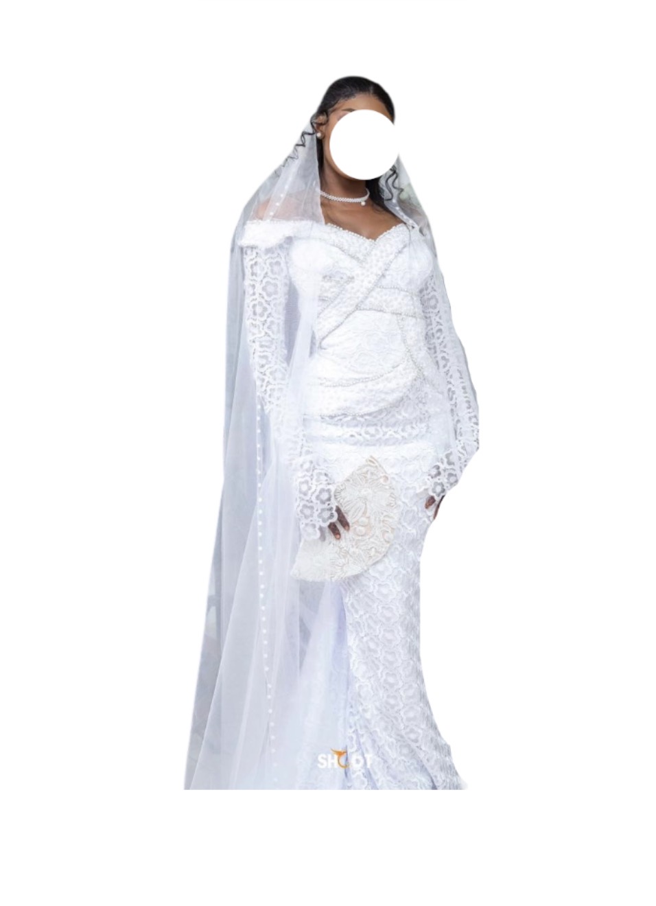tissu acheter à 145.000 et cousu à 130.000 au Sénégal, porté une fois, vendu avec un voile, pas de réserves