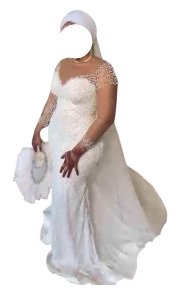 Couture et le tissu ont coûté 800.000 FCFA, porté une fois, avec foulard et voile