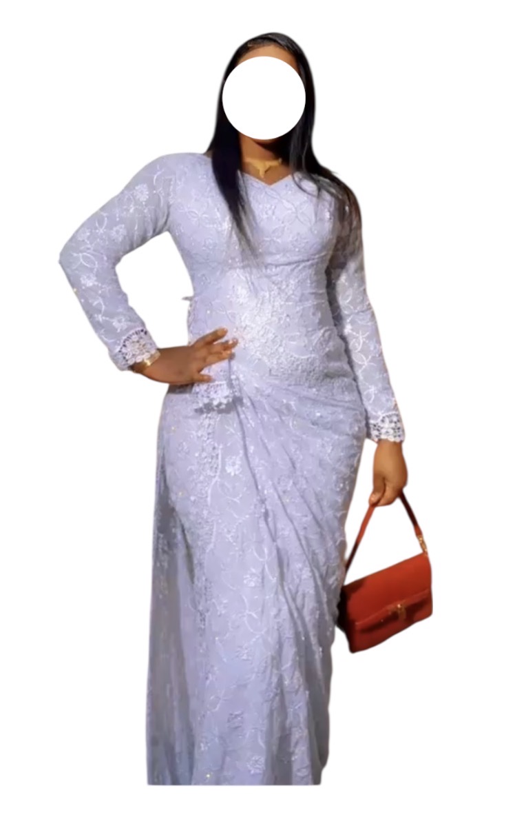 Brodé acheter 30.000 et cousu à 50.000, porté une fois, sans foulard